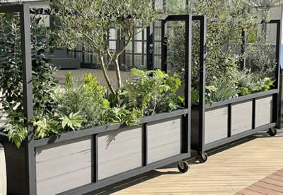 このキャスター付き大型プランター仕切りは、機能性とデザイン性を兼ね備えた洗練された逸品です。頑丈なスチールフレームと木材の組み合わせが、モダンでナチュラルな雰囲気を演出。キャスター付きで移動が簡単なため、店舗やオフィス、テラス空間のレイアウト変更もスムーズに行えます。グリーンを美しく引き立てながら、間仕切りとしての役割も果たし、空間を快適にデザイン。屋内外問わず活躍する、スタイリッシュで実用的なプランターです。
