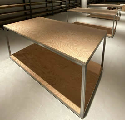 このスチールフレームと木材を組み合わせたテーブル什器は、シンプルながらも洗練されたデザインが魅力です。頑丈なスチール構造が安定感を提供し、温かみのある木製天板がナチュラルな雰囲気を演出。広々とした天板と下部の収納スペースを備え、作業台や店舗のディスプレイ什器として幅広く活用できます。無駄を省いたミニマルなフォルムは、どんな空間にも溶け込み、モダンでスタイリッシュな印象を与える、機能性とデザイン性を兼ね備えた逸品です。